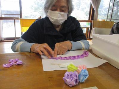 サテンリボンを使った薔薇の花作りの続きです🌹
