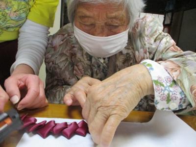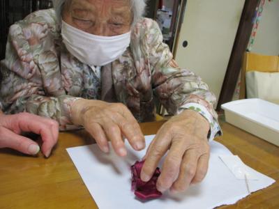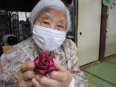 早速一つ出来上がって、上手に出来上がった薔薇にご満悦の母です揺れるハート