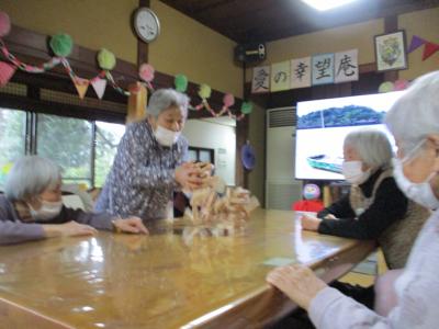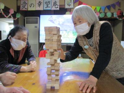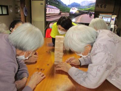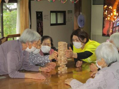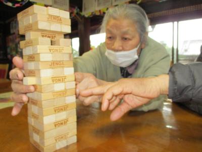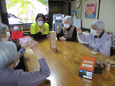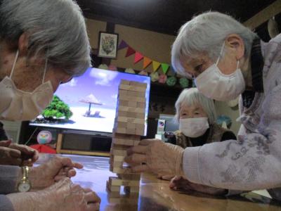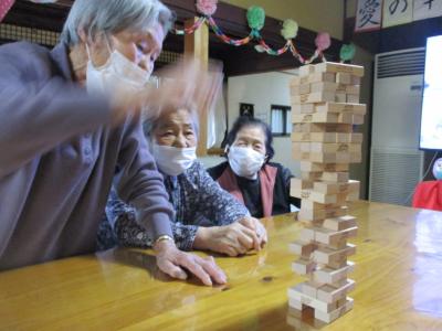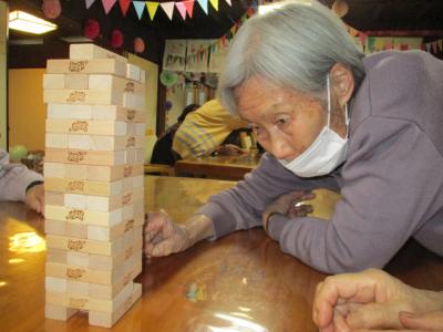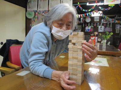 風船バレーを楽しんだ後は、ジェンガを行ないました。