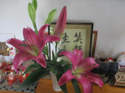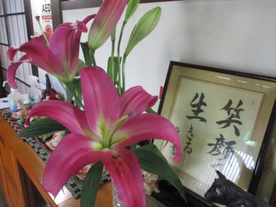 生憎のお天気でも、大きく咲き誇る百合の花を見ると