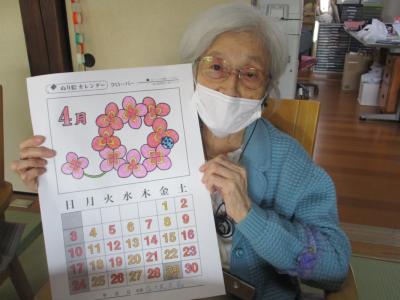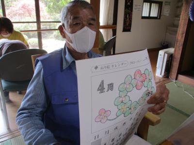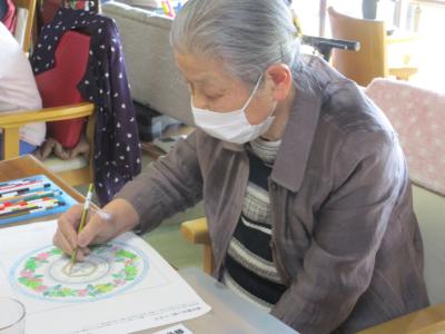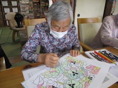 午前中はことわざ穴埋めやカレンダー塗り絵、曼陀羅塗り絵
