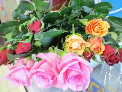 薔薇、カーネーション、ガーベラ、スターチス、デルフィ