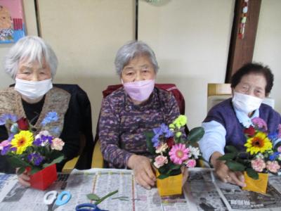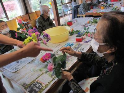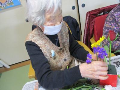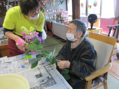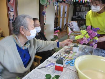 お好きなお花を選んでいただいたらフラワーアレンジメント