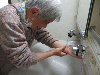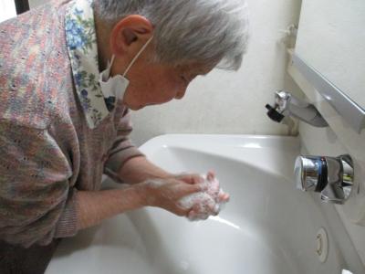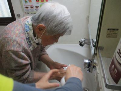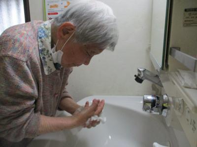 うがい・手洗い・手指の消毒をスタッフ付き添いのもと行なっていただきます