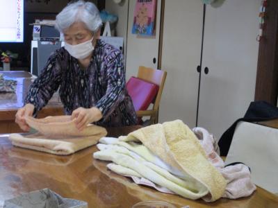 洗濯物を畳んでくださる母にカメラを向けてみましたよ~