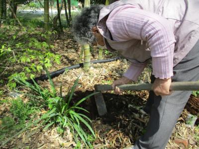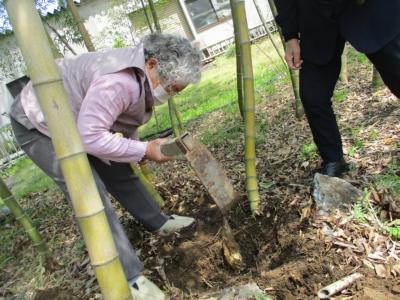 竹が密集している所はスコップで慎重に慎重に・・・