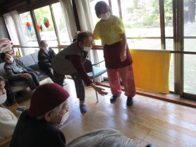 うがい・手洗い・手指消毒を終えたら、すぐに洗濯物を畳んでくれる母達