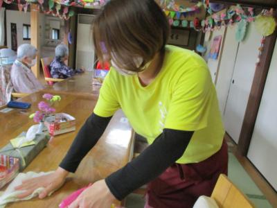 お昼休みなど定期的に手すりやテーブル等消毒も怠りません!