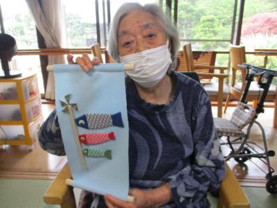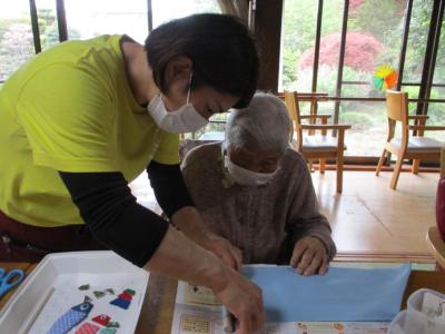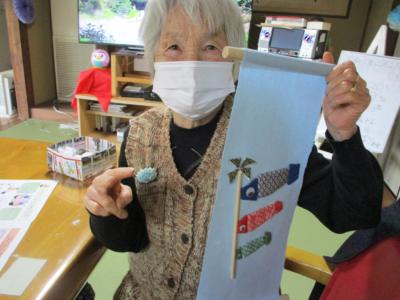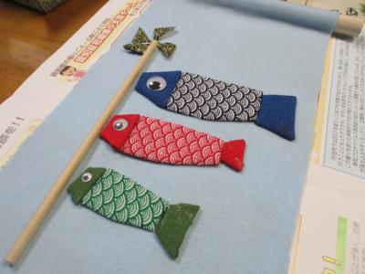 今日はお父さん、お母さん、子供鯉のぼりの目を付ける