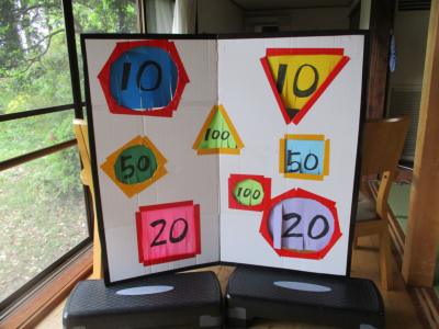 真剣に狙いを定め投げる母