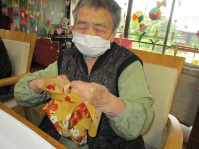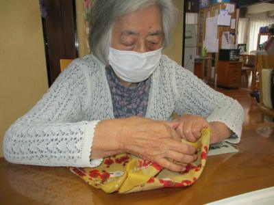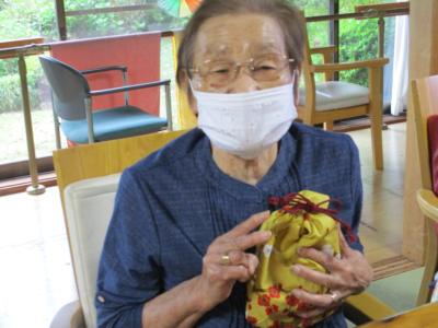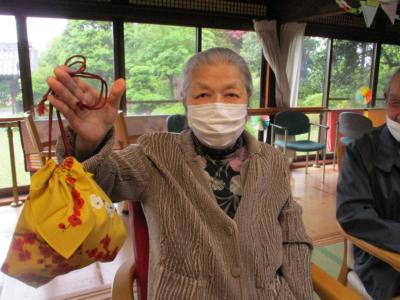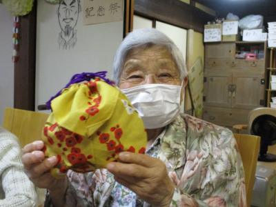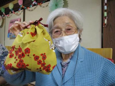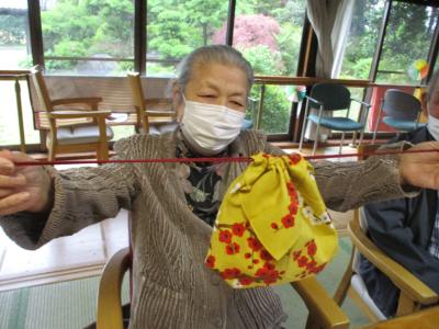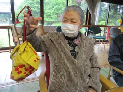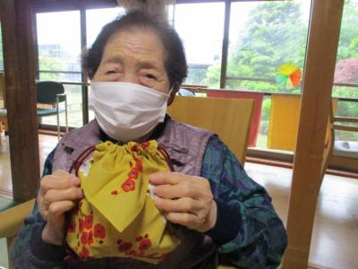 一足先に完成したお母さんの巾着袋を見せて頂きました