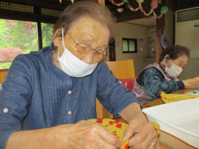 完成を思い描きながら、一針一針一生懸命に縫い進めるお母さん達です。