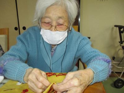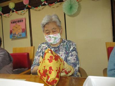 ご自分で縫い上げ、出来上がった作品を手にご満悦の様子です