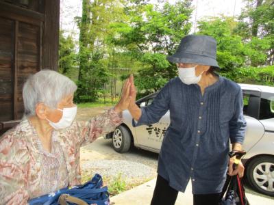 仲間との三日ぶりの再会にハイタッチで喜び挨拶を交わす母達です