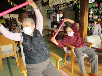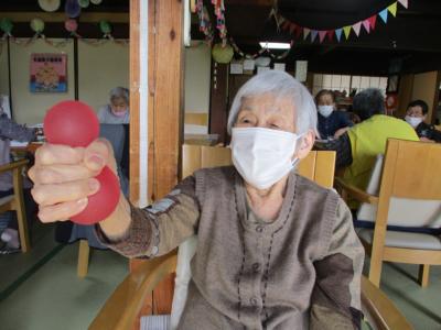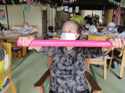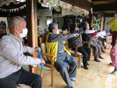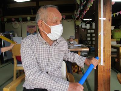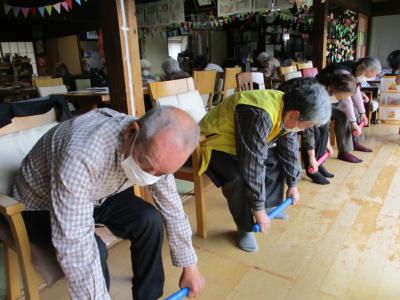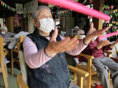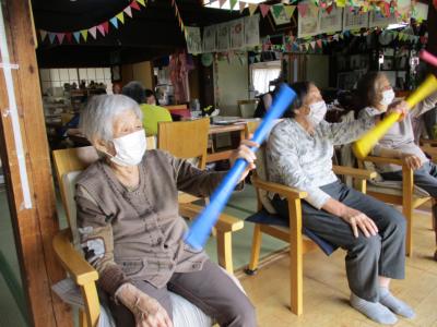 皆さんで取り組む機能訓練は、笑いを交えて楽しみながらも一生懸命に取り組まれ