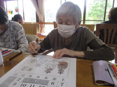 本日は、多くの方が五月の暦の色塗りに取り組まれています