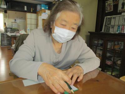 こちらのお母さんは、左手でとっても器用にハサミを使いこなしパーツをカットして下さっています。