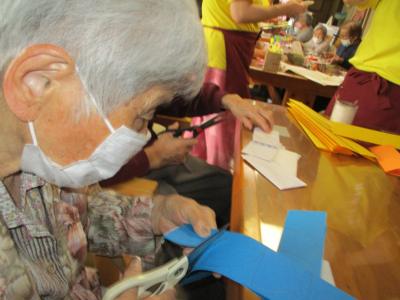 午後は、皆さん全員で共同製作の吊るし飾りづくりを行います。