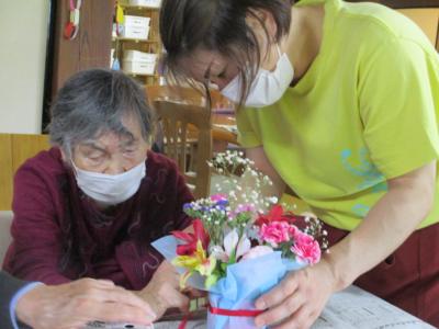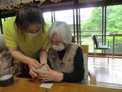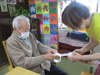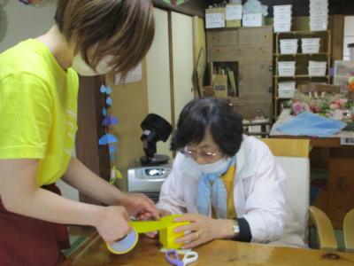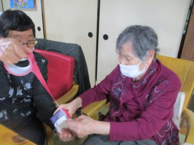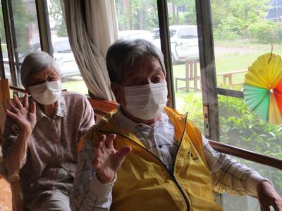 スタッフやお隣さん同士で仲良く行なっていますほっとした顔