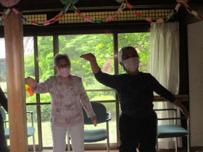 朝の歌謡体操では縁側が大賑わいダッシュ (走り出すさま)ダッシュ (走り出すさま)