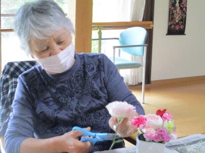長さを調節しながらお花を活けていきます美容院 (鋏)