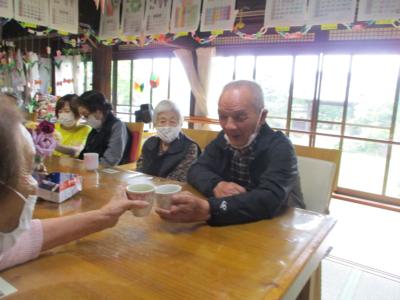 「お茶で乾杯だ~」と父の声掛けにお二人でカンパ~イ