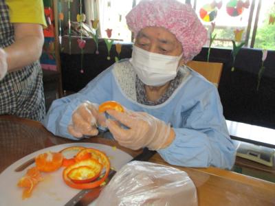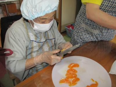 こちらの母達は、ミカンを綺麗に剥いて下さっています。
