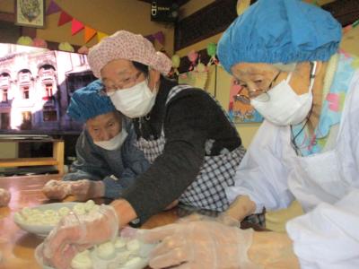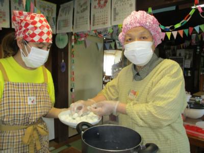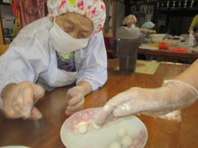 皆さん、同じ大きさになるよう分けながら丸めて下さています●●●