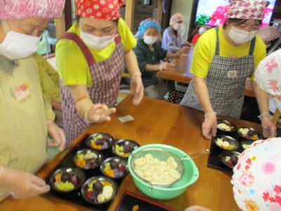 今日のおやつ作りのメニューは、あんみつ大好きなこちらのお父さんのリクエストにより【あんみつ】に決定で~す\(^o^)/