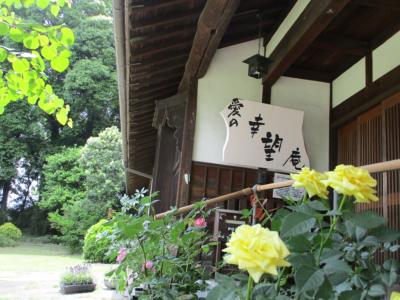 スロープ際に咲く色とりどりの薔薇が皆さんをお出迎え