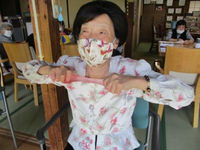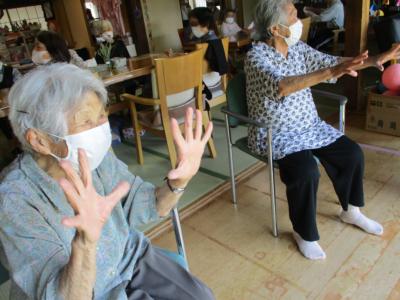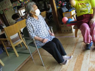 いつもやっているバランスボールリレーに、今日はカラーボールが仲間入り