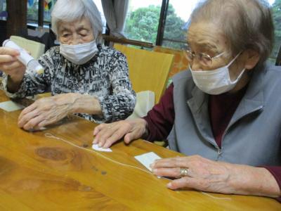 糸が細く動いてしますので、協力し合って作業に取り組んでいきましたひらめき