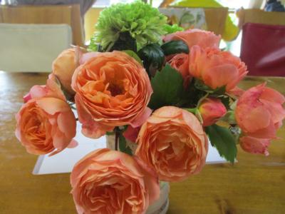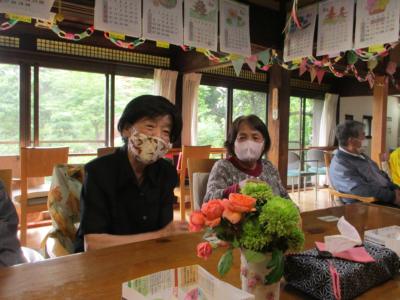 皆さん、テーブルの上に飾られたお花を眺め癒されています