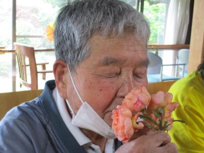 お父さんも、芳しい薔薇にウットリ
