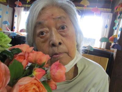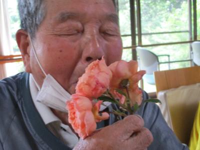 花瓶を手に取りお花を眺める母。。。