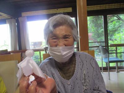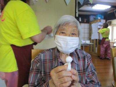 出来たテルテル坊主を手に笑顔の皆さん(*^_^*)