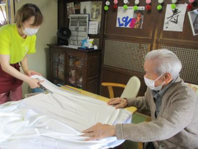 お父さんも生地の裁断を手伝って下さいました。