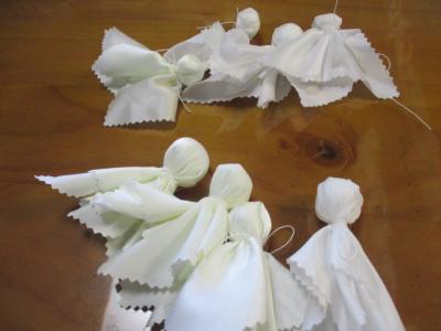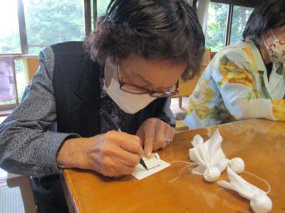 テルテル坊主の目にする部分はこちらのお母さんが、黒マジックで作成中