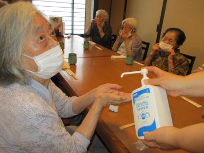 メニューを決めて頂きましたら、ひとり一人に再度手指の消毒を行なって頂きまして