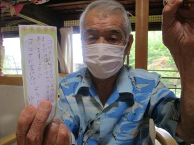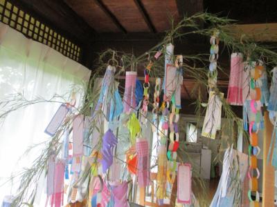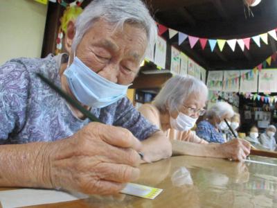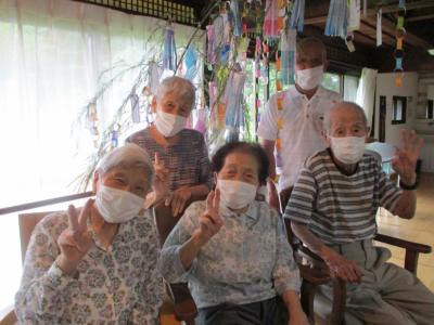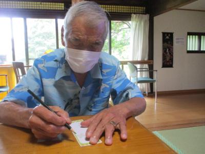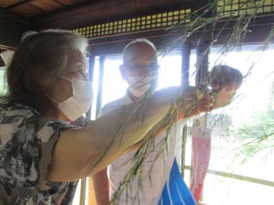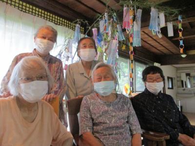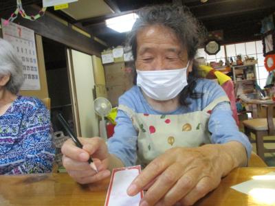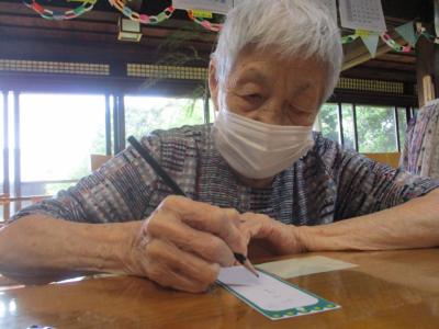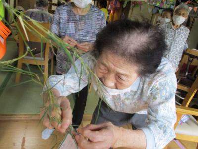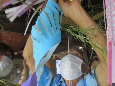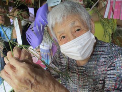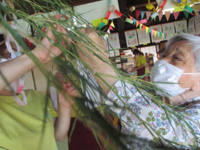 今日は皆さんで笹の葉に短冊と七夕飾りをしましょう