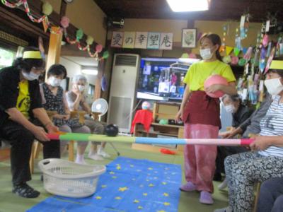 可愛い織姫と彦星が天の川を挟んでボールを運んでいき