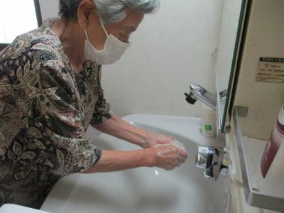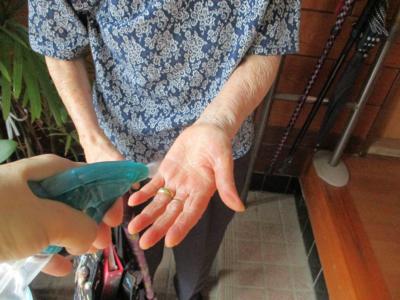 父も母もスタッフも消毒をしてからお部屋の方へと向かいましたひらめき
