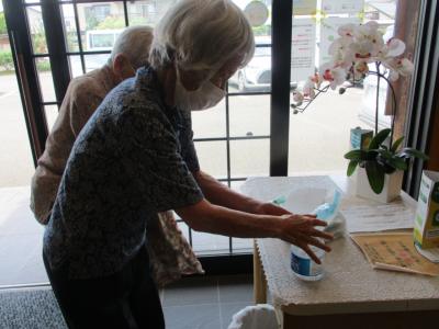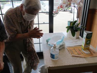朝のお迎え時には、検温と消毒を済ませてからご乗車いただいておりますひらめき