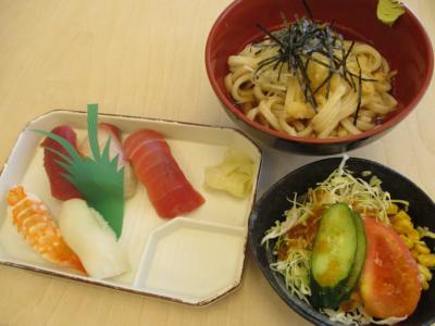 お寿司ランチにはおうどんサラダ茶碗蒸しまでついて