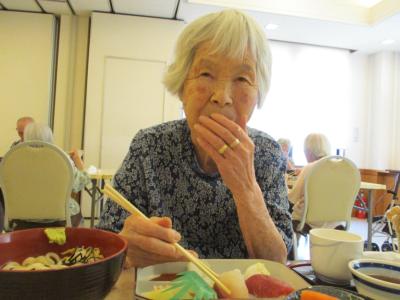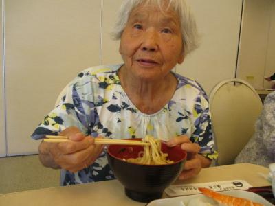 「おうどんが冷たくて美味しい~」と暑い日にぴったりの冷たいおうどんに満足な母るんるん (音符)