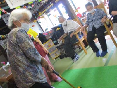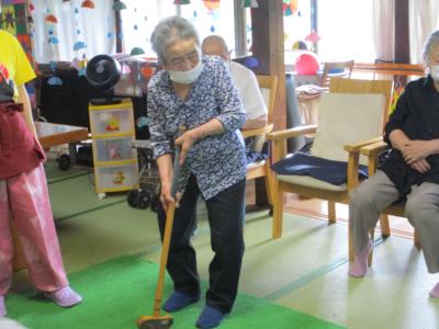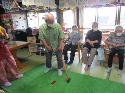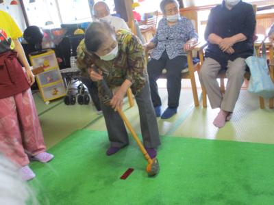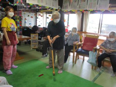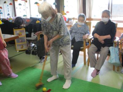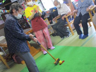 今日はお父さんが楽しみにしているパターゴルフ大会