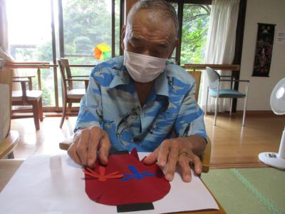 来週の夏祭りイベントに向けて提灯作りを進めます