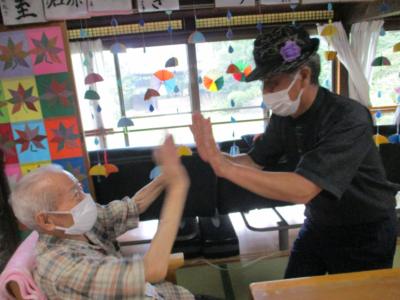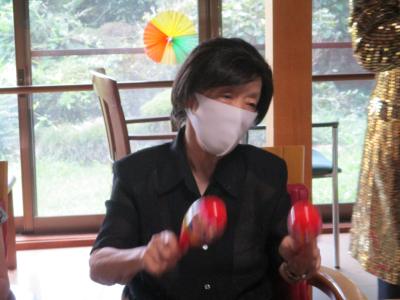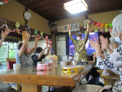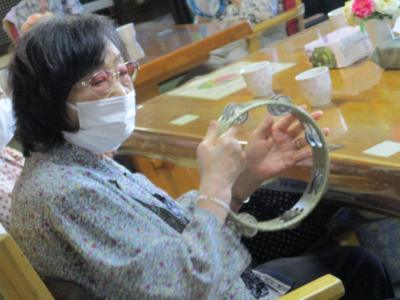 曲が始まるなりタンバリンやマラカス、手拍子でノリノリです