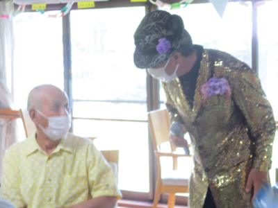 キラキラ衣装の社長を見るなり皆さんこの表情