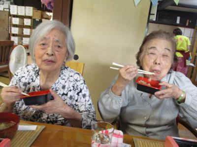 昼食になり父と母に配られた折詰をワクワクしながら開けてみるとグッド (上向き矢印)